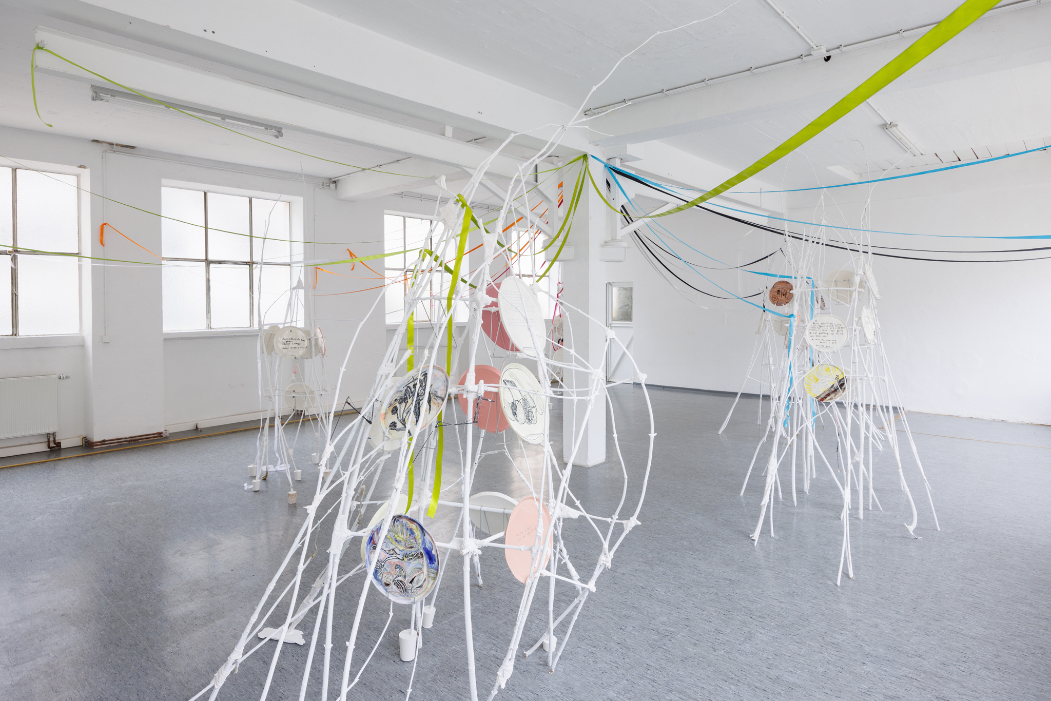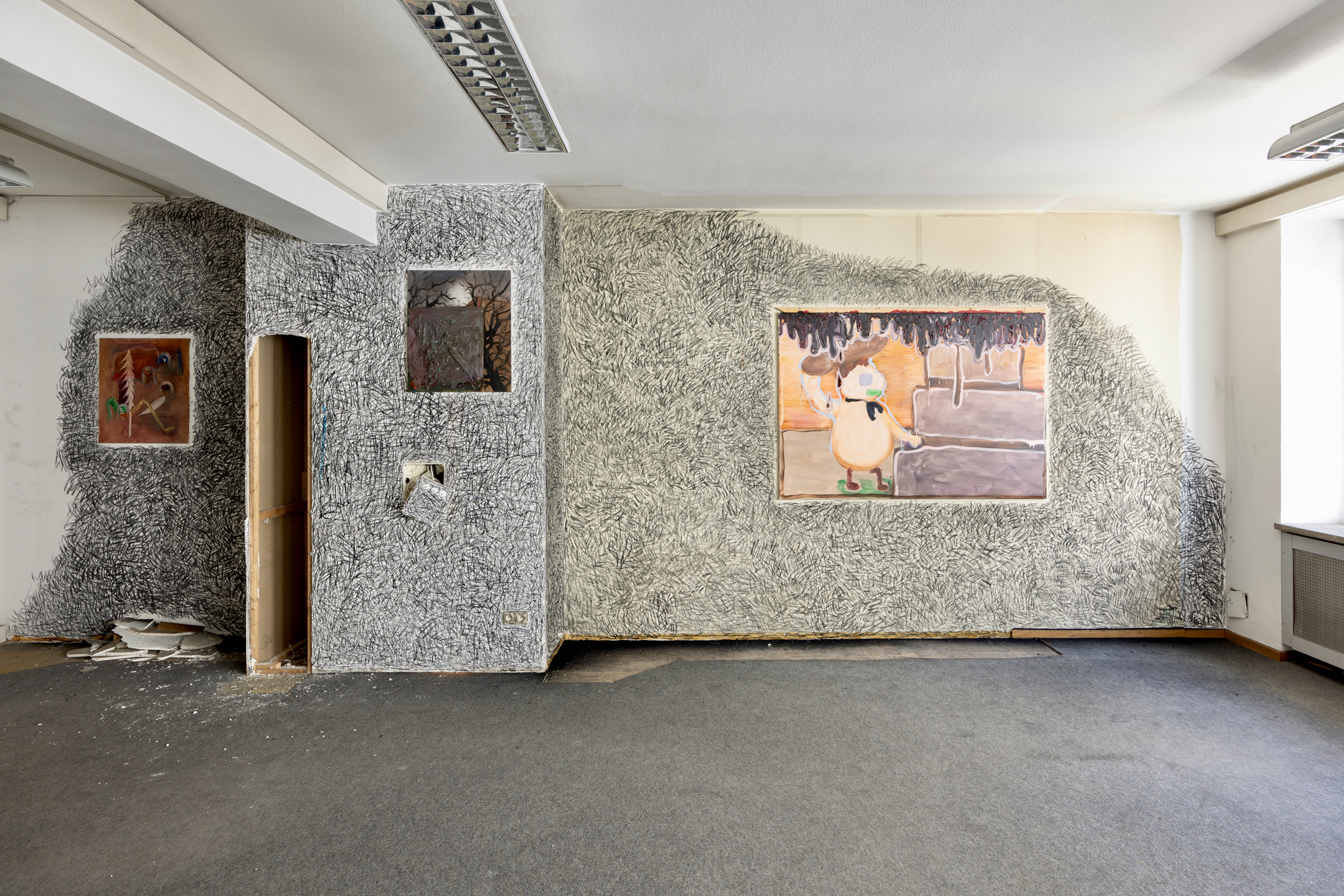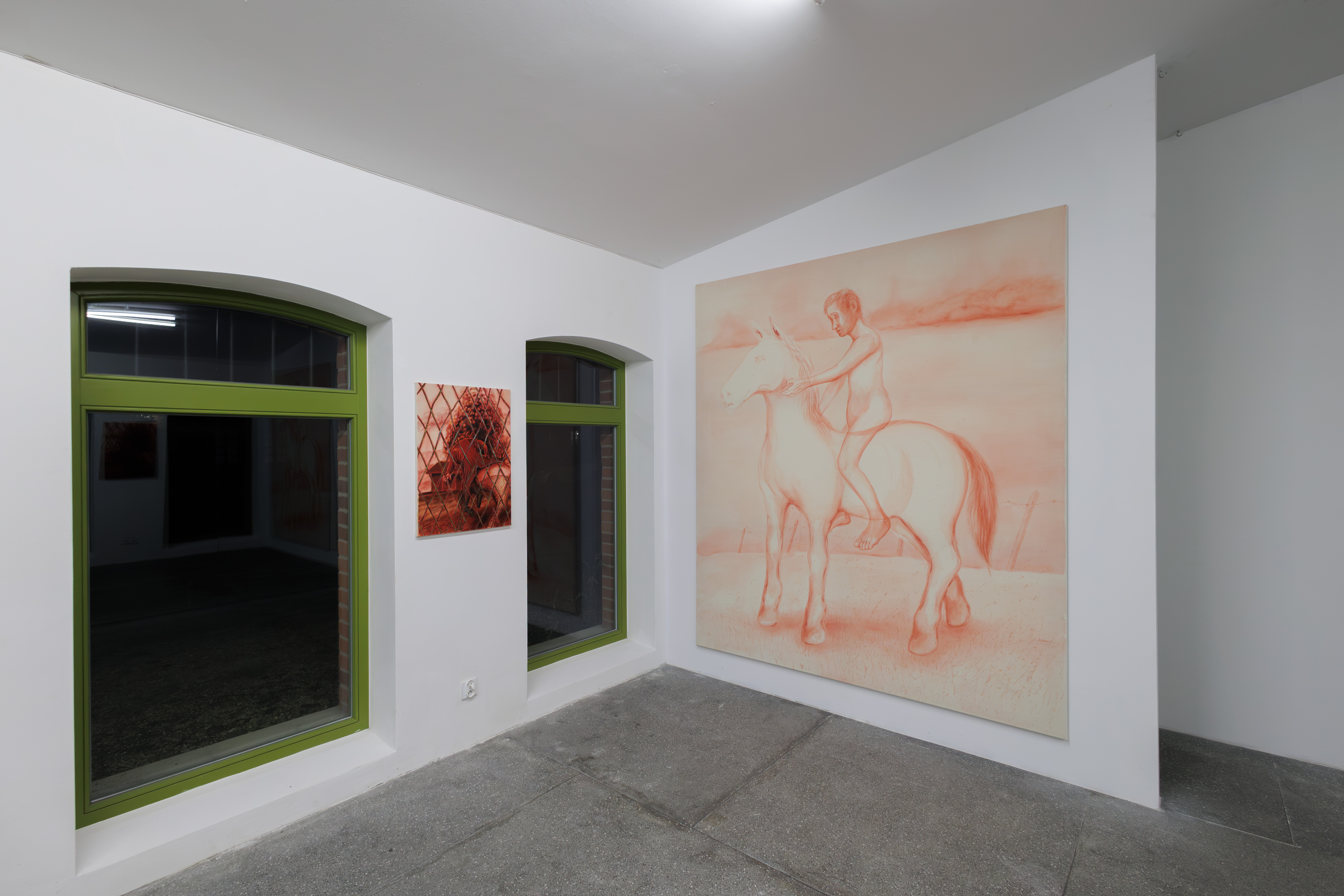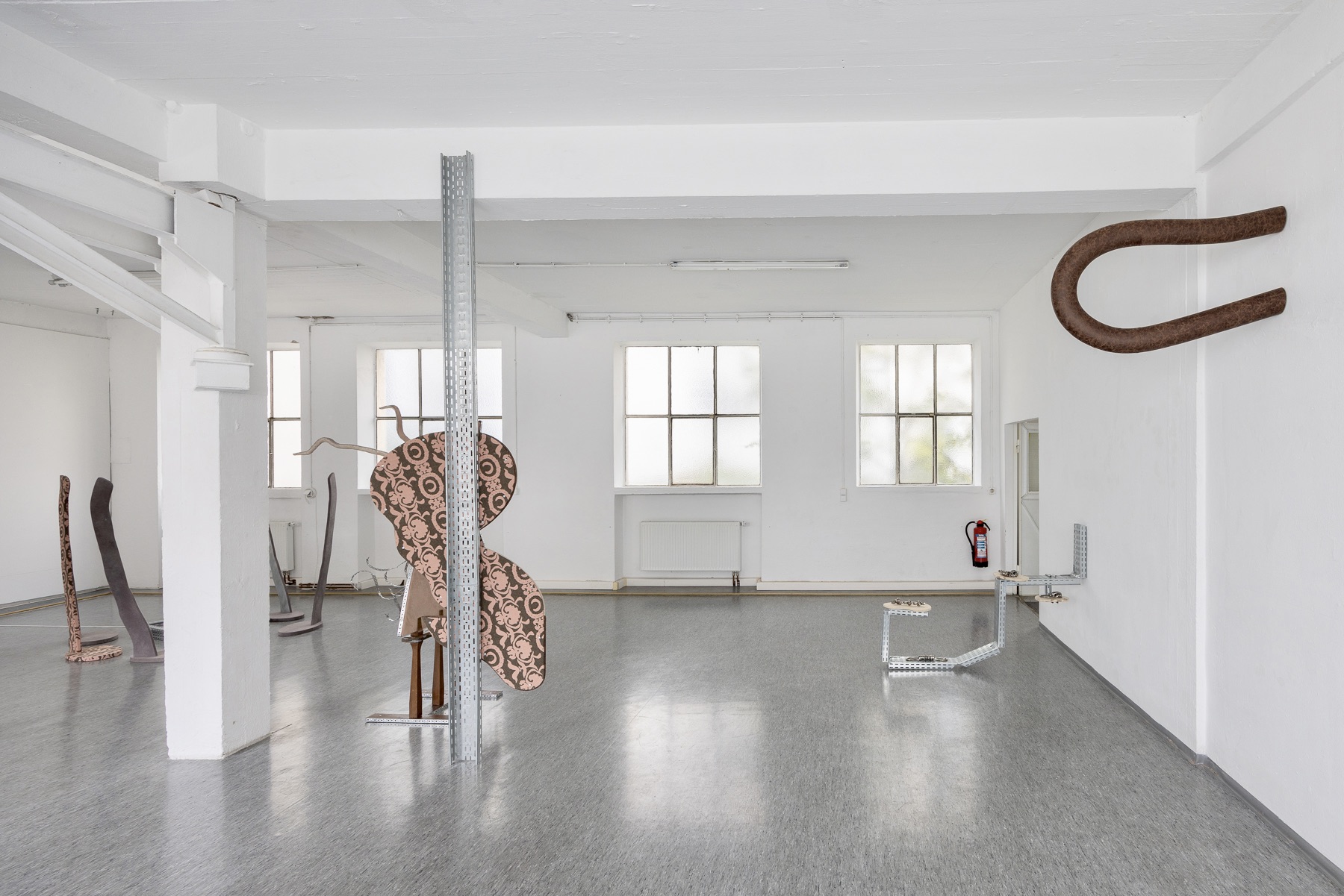 There are animals we see and animals we do not. The animals we do see, we organise and use, tame and breed. We control them as meticulously as Eadweard Muybridge did, when he set up multiple cameras to capture the image of the horse in motion or a lion in a cage, the starting point of Jakob Gilg’s paintings. We assign animals different roles: you there, you look soft and cuddly, you will be a pet. And you, you over there, so powerful and strong, you we will make into a symbol. Kitsch ceramic cats and scaled-down digital scans of lion monuments tumble, shatter and recombine in Julia Klemm’s work.