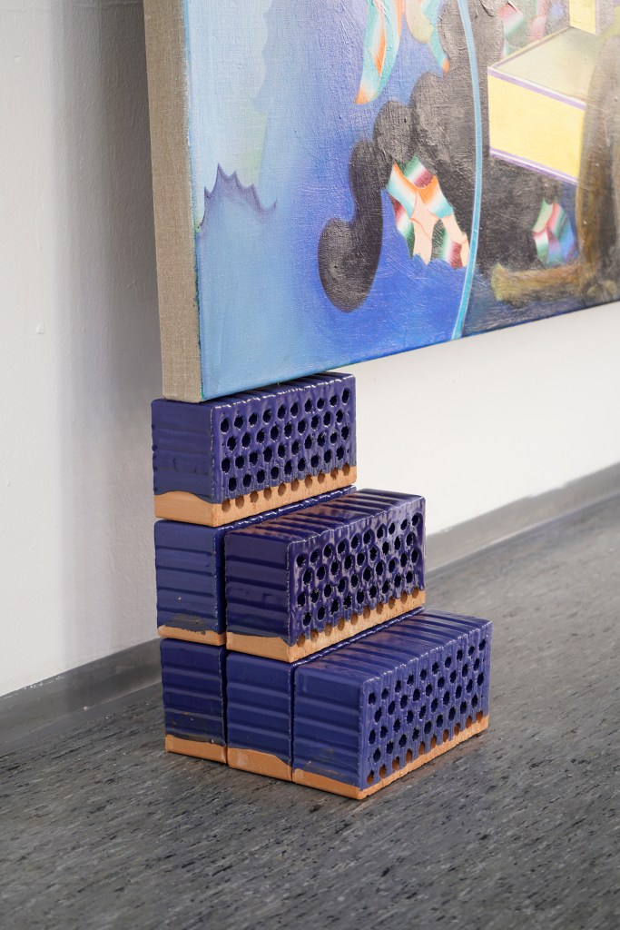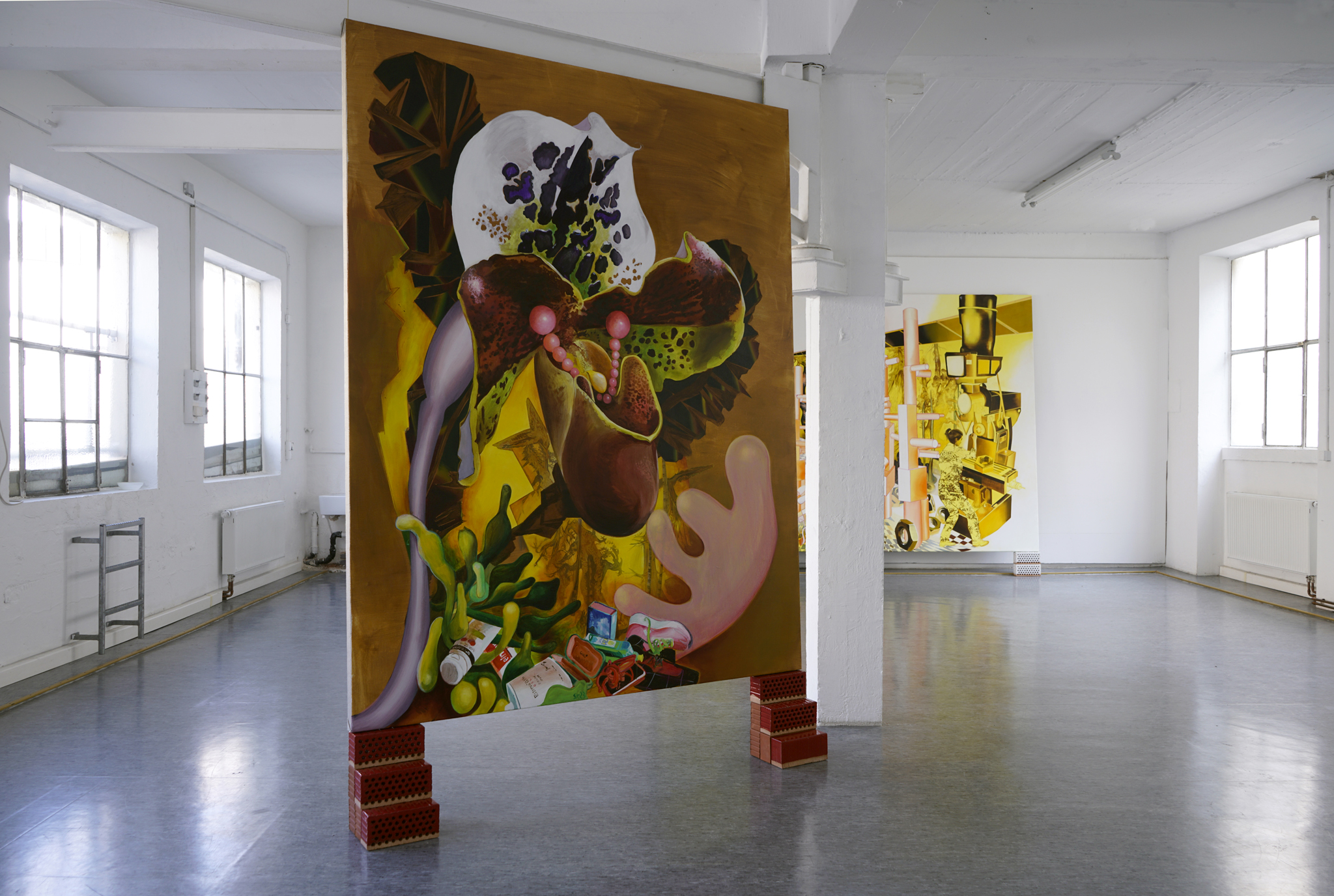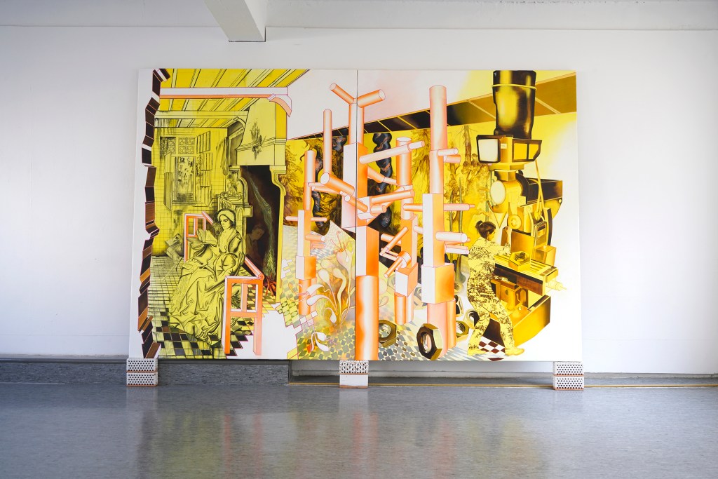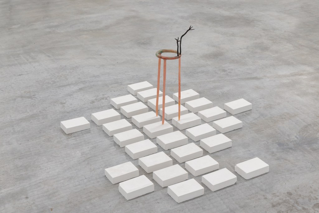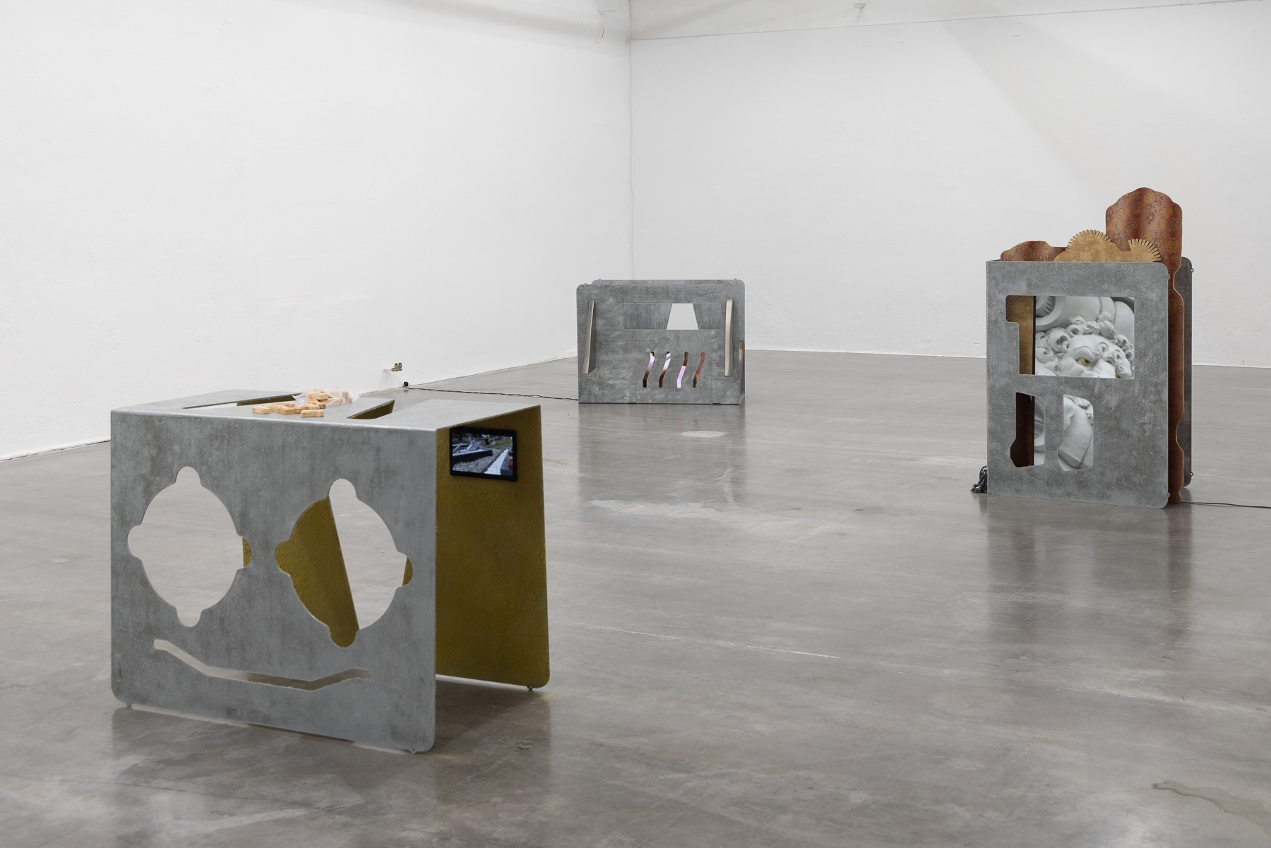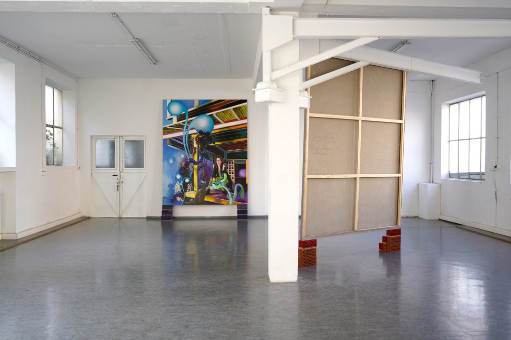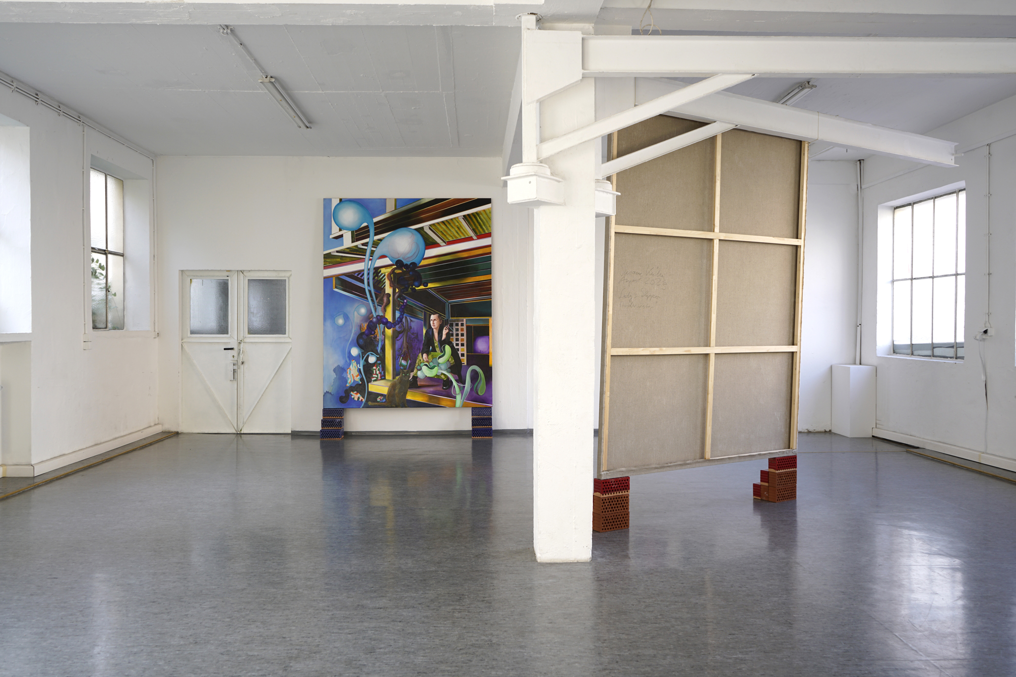Lukas Hoffmann too stages a fictional world that has something of Lewis Carroll’s unsettling absurdity about it. There is a wooden castle with ears, eyes, a wide open mouth and a nose, and it is both too big and too small. Drink me, eat this, nibble both sides of the mushroom circle. As Alice grows bigger, her initial self also becomes smaller, pulled in both directions at once. With components jutting out and sliding in, the body both outside and inside, the castle too grows small as it becomes big. “Becoming without measure, a veritable becoming-mad.”[6] Observing this madness is the upside down head of Pan, the mischievous god of the wild. A mascaron fallen from its pediment. Run away in panic, it urges us – run away in chaos, it smiles.