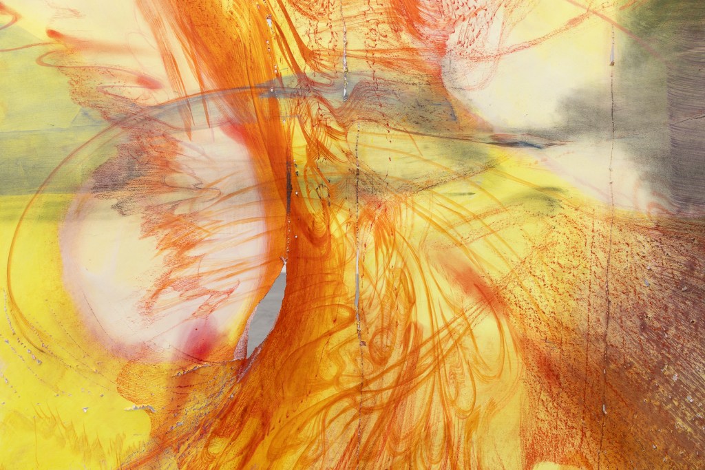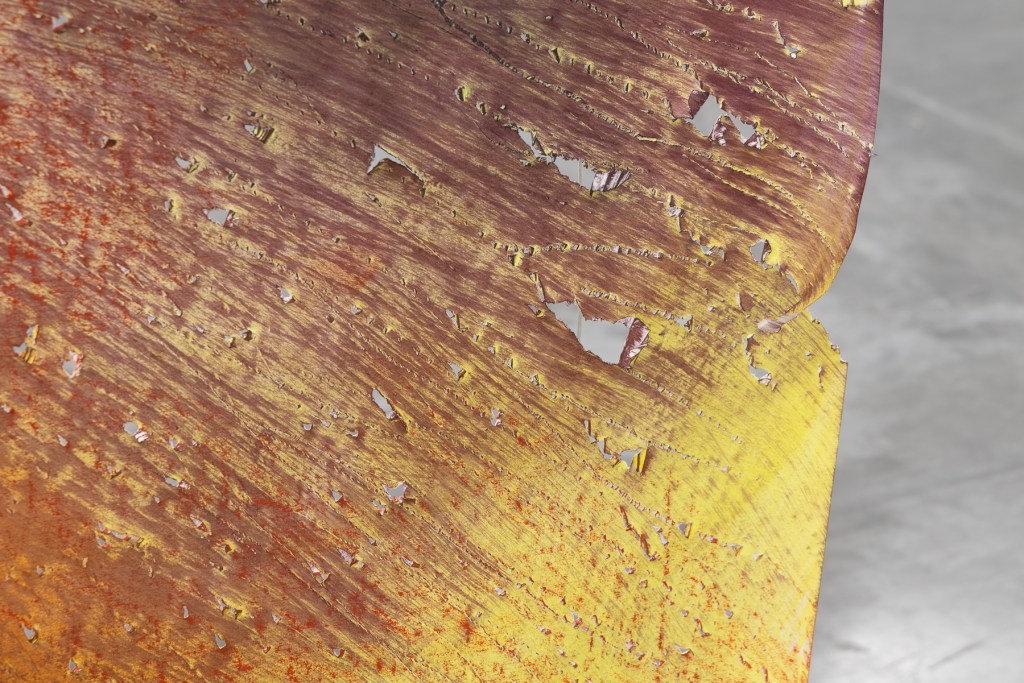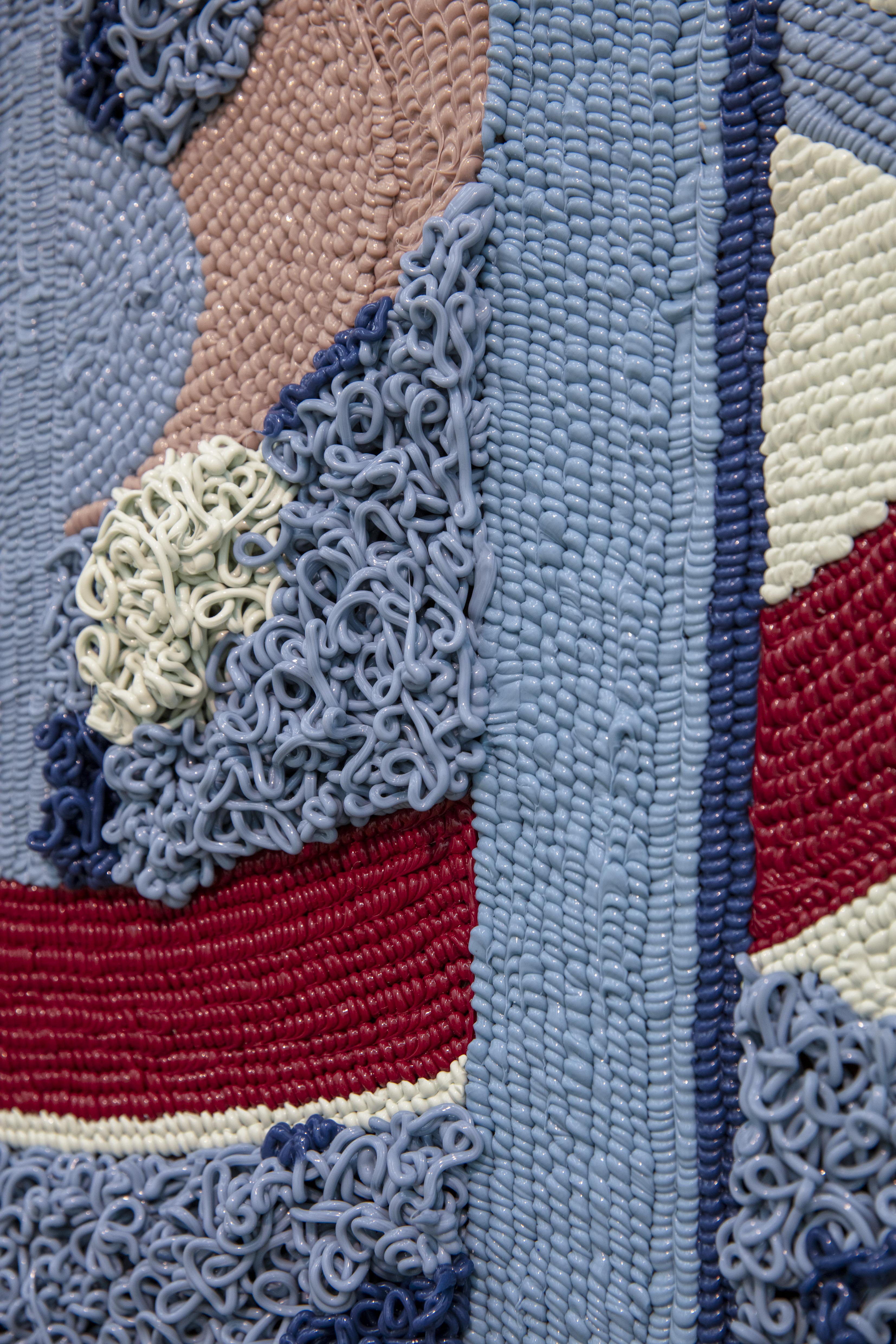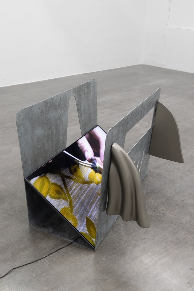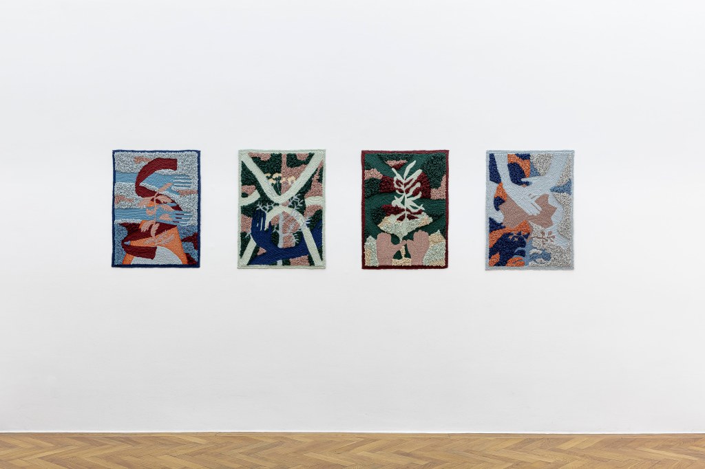 In the exhibition, Sophia Mainka shows a series of wall mounted works made from silicone paste. Heavy and solid, yet curiously slippery, they are based on a Tarot deck of cards. It is peculiarly appropriate that the largest is the wheel of fortune, usually interpreted as standing for change or becoming. Fortune can be good or bad depending on the game, the question asked of the cards, open to interpretation. In Tarot, one card can mean many things and then change meaning at different times. In contrast, destiny is the thread woven through the image and cut by the three mythological sisters. The turn of the card is always fateful. Whatever the outcome of the roll of dice, this outcome is necessarily so: sky back to earth, slide and snip.