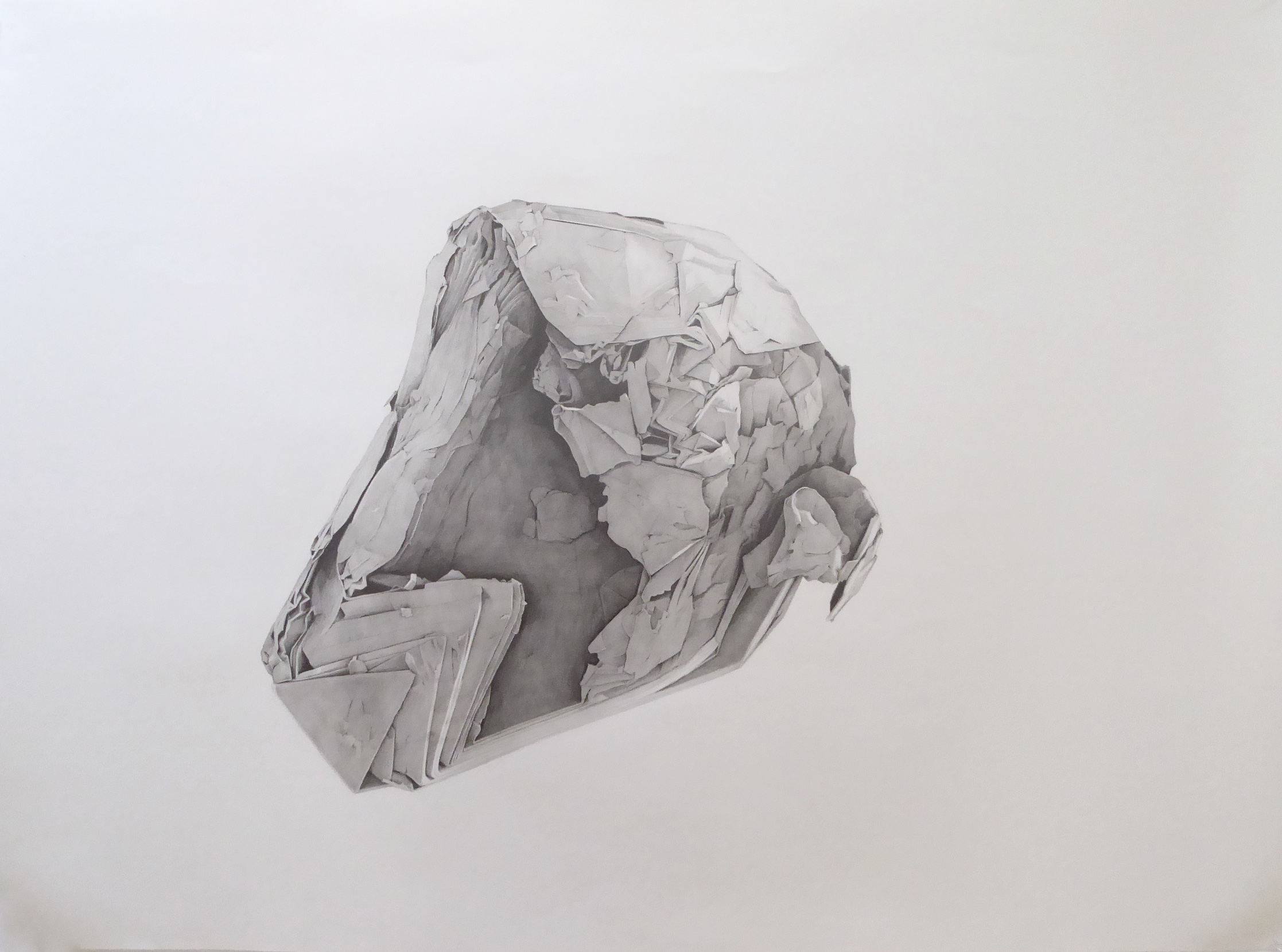 At GiG Munich Jo Love shows two bodies of work. The first consists of a series of landscape drawings made in collaboration with a senior scientist at the Natural History Museum in London. In this series Jo Love re-draws the electron microscope images of marble and graphite particles in order to reclaim the tactile materiality lost to modern technology. She also imbues the image with a different kind of temporality to that of the digital experience.