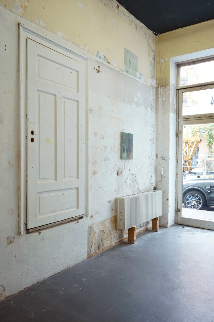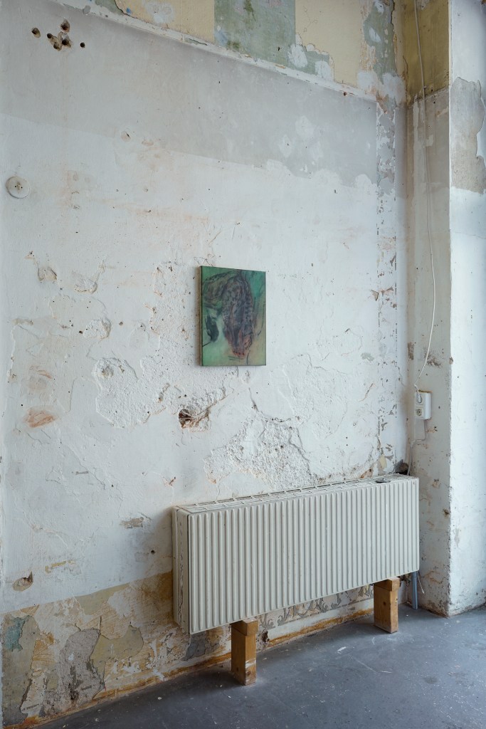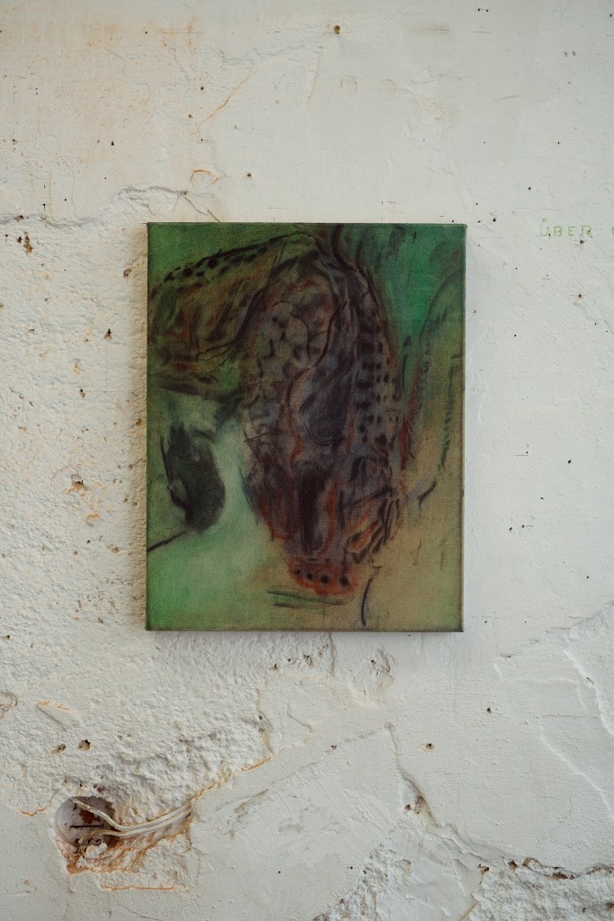 gouache paint, acrylic resin, biro, pencil, gesso and ink on wood. 31 x 24 x 5 cm; Julia Klemm, A chimera is not a pet 2,2025, steel, glaze, ceramic, pigment, 44 x 38 x 74 cm,; Julia Klemm, A chimera is not a pet 3 , 2025, steel, glaze, ceramic, pigment, 46 x 34 x 42 cm)